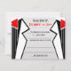 Cette carte de réponse mariage de 4,25 po x 5,5 po a un look moderne audacieux de ses tuxedos blancs avec cravates arc-en-ciel rouge s'élevant contre un élégant dégradé gris pâle, ces coordonnées avec la série d'invitations Bauhaus Tuxedo Mariage de TheMarryingType, postage et plus encore.