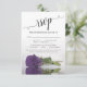 Cette belle carte RSVP présente un design simple mais élégant avec un seul rose améthyste à longue tige de couleur violet réfléchissant dans un bassin d'eau avec des ondulations et des vagues. Le titre est écrit en calligraphie en dentelle et il y a de l'espace pour que vos invités indiquent le nombre total de participants et leur choix de repas.
