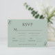 Ce magnifique mariage RSVP est parfait pour tout mariage de saison. L'arrière - plan vert doux et les parchemins élégants accentuent les détails de cette belle carte de réponse. 100% satisfaction client avec "Zazzle" Un RSVP parfait pour votre journée spéciale.
