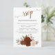Cette belle carte RSVP présente un design simple mais élégant avec un ensemble de roses d'aquarelle peints à la main et de feuillage de chute dans les tons de rouille orange, de bois brûlé et de pêche corail. Le titre est écrit en calligraphie en dentelle et il y a de l'espace pour que vos invités indiquent le nombre total de participants et leur choix de repas.