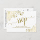 Ces belles cartes RSVP vous permettront de répondre facilement à vos faire-part de mariage. Elles présentent un design élégant avec de la calligraphie en écriture or sur un arrière - plan blanc, et des boucles et tourbillons en dentelle dorée dans les coins. Le verso de la carte est un formulaire à remplir et à retourner, indiquant s'ils peuvent y assister ou non, le nombre d'invités qu'ils apportent et leur choix de repas. Il y a également de l'espace pour un site Web afin que vos invités puissent répondre en ligne si cela leur convient mieux.