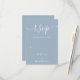 Cette élégante carte RSVP bleu et blanc poussiéreux peut être personnalisée en lettrage blanc chic. Vous pouvez ajouter des informations supplémentaires telles que le choix du menu au verso. Parfait pour les mariages, douches nuptiales, baby showers, baptêmes, fêtes de fiançailles, fêtes d'anniversaire, diplômes, anniversaires et autres événements spéciaux tout au long de l'année! Conçu par Thisisnotme©