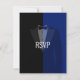 Cette carte rsvp de soirée tuxedo noir bleu sera parfaite pour d'autres occasions également. Célébrez en style avec toute cette collection. La collection peut être modifiée pour correspondre à votre événement, elle est personnalisable. Bonne fête, applaudissements !