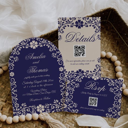 Cartons Réponse Blue Floral Wedding QR