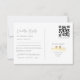 Carte postale RSVP de mariage blanc et bleu moderne avec des tourterelles en feuille d'or, un code QR scannable pour les réponses numériques, des options de préférences de repas et une disposition minimaliste. Cette carte de réponse élégante offre une façon élégante et pratique de répondre aux clients. Il se marie très bien avec les suites mariages romantiques ou sur le thème des chutes.