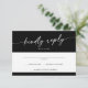 Cette carte rsvp de mariage simple et chic boho est parfaite pour un mariage minimaliste. Le design bohème moderne noir foncé, sophistiqué et chic, se compose d'une calligraphie rustique simple au style unique mais classique.