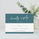 Cette carte rsvp de mariage turquoise et chic boho est parfaite pour un mariage minimaliste. La tonalité audacieuse turquoise de bijou moderne design bohème dispose de calligraphie rustique simple avec un style unique mais classique.