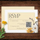 Célébrez votre histoire d'amour baignée dans la lumière chaude d'une prairie dorée. Notre carte de réponse mariage fantaisiste avec un code QR présente des bouquets d'aquarelle vibrants. Or jaune baisé au soleil, beurres jaunes et bruns dorés se mêlent aux marguerites blanches délicates, aux fleurs blanches et aux lis jaunes élégants. Des accents ludiques de chardons séchés et de fines herbes beiges apportent une touche de charme rustique, tandis que le feuillage vert sauge et les sprays de baies noires offrent une touche de fantaisie. Des polices jolies et élégantes complètent parfaitement le design, donnant un ton léger et joyeux pour votre journée spéciale. Cette suite enchanteresse capte l'essence d'une prairie d'été, invitant vos invités à partager la joie de votre amour. Créé par Simply Farmhouse Press.