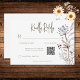 Annoncez votre mariage avec une touche d'élégance sobre. Notre carte de réponse mariage aquarelle au code QR présente un délicat bouquet de fleur sauvage, peint à la main dans des tons pastel doux. Imaginez un assortiment doux de jaune crémeux, bleu pâle, rose doux, lavande apaisante et vert rafraîchissant, capturant l'essence d'un rassemblement décontracté et élégant. L'aquarelle est posée sur un arrière - plan blanc immaculé, assurant que vos détails mariages se démarquent magnifiquement. Ce design enchanteur est parfait pour le couple à la recherche d'une esthétique intemporelle et romantique avec une touche de fantaisie, donnant le ton parfait pour votre journée spéciale. Créé par Simply Farmhouse Press.