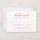 Carte RSVP de mariage en terre cuite de style classique avec un design simple avec l'en-tête dans un script traditionnel avec vos détails en orange brûlé / rouille sur un arrière - plan blanc. Le modèle propose un choix de repas pour ses clients. Cette carte de réponse de mariage sophistiquée et élégante est idéale pour un mariage boho formel.