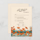 Cette belle bohème bohème avec choix de repas carte de mariage RSVP, dispose d'un dessin à l'encre de fleurs sauvages de pavots aux couleurs chaudes rustiques, orange et turquoise, inspirée de la technique d'art japonais traditionnel ukiyo-e ou impression de blocs de bois japonais. Personnalisez cette belle carte RSVP avec votre propre texte.