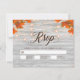 Bois gris rustique, Lumières à cordes, Étincelles d'or & Feuilles d'automne Carte RSVP de mariage saisonnier.