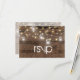 Ce magnifique et élégant boîtier rsvp est doté de jarres en maçon et de lampes à cordes sur un arrière - plan en bois rustique. Facile à customiser avec vos propres informations RSVP. Veuillez me contacter pour toute personnalisation de design supplémentaire dont vous pourriez avoir besoin pour votre beau mariage. Design © par TK Goforth. Pour la coordination des articles, veuillez visiter ma collection de Mariages Rustic Mason Jar et String Lights et ma boutique Zazzle :