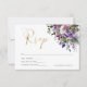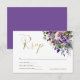 Cette somptueuse suite de Faire-part de mariage possède un bouquet floral d'aquarelle en violet, violet, lilas et blanc. Éléments botaniques eucalyptus et verdure. Parfaite pour un mariage moderne boho, cette suite comprend un design moderne simple et des détails de script cursif doré.