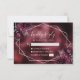 Cette élégante carte de mariage moderne RSVP présente un cadre géométrique argenté orné de fleurs bordeaux et argentées sur une image arrière - plan en faux feuille bordeaux foncé. Le texte personnalisable combine écriture fantaisie gris argenté et fontes cuivre. L'envers présente la même conception de fausse feuille bordeaux.