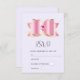 Une carte RSVP avec un arc brillant avec contour doré et une pierre rose facettée au centre. Un glamour de luxe féminin.
