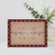 Un mariage r.s.v.p. avec une illustration de deux branches d'arbres à feuillage persistant. L'Arrière - plan est rouge et noir plaid. Personnalisez le texte.
