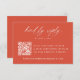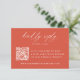 Éclairez vos invitations de mariage avec cette carte RSVP étonnante avec une élégante calligraphie blanche sur un arrière - plan Verona sunset-orange, parfait pour les mariages en toute saison et adapté aux célébrations formelles et informelles. Le design accrocheur permet aux couples de personnaliser leur date de réponse désirée et de présenter leur site mariage en caractères gras blancs, en s'assurant que tous les détails sont magnifiquement présentés. Un code QR parfaitement intégré permet aux clients d'accéder facilement à votre site Web mariage pour plus d'informations ou à RSVP en ligne. Combinant élégance intemporelle et fonctionnalité moderne, cette carte RSVP chic apporte une touche chaleureuse et éclatante à votre papeterie mariage tout en simplifiant les réponses des clients.