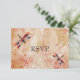 Cette carte-réponse de réception de mariage aux libellules présente mes libellules aquarelles rouges sur un design d'art numérique en couches. Recherchez les faire-part de mariage et les annonces de save the date assortis.