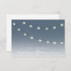 Un mariage de soirée en plein air r.s.v.p. avec l'illustration de deux cordes de lumières contre un ciel nocturne parsemé d'étoiles.