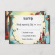 Cette élégante carte de mariage de style conte de fées RSVP est parfaite pour un mariage moderne. Le design rétro présente une forêt enchantée vintage, une illustration de château et une calligraphie noire sur un arrière - plan sur le thème du livre de contes.