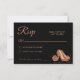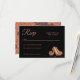 Assurez-vous que vos invités répondent avec style avec cette carte RSVP Luxe Metallic Copper Quinceañera. Caractérisée par une paire chic de chaussures à talons hauts en cuivre scintillant et des accents de rose délicats, cette carte complète parfaitement votre suite de robe de bal glamour. Le fond noir sophistiqué et le texte de ton or rose offrent un look moderne et haute couture pour votre célébration exceptionnelle.