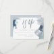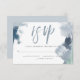 Carte RSVP de choix de repas mariage | bleu foncé, vert mer, bleu pâle et cyan sur blanc. La calligraphie brosse épelle RSVP avec des détails dans une police contemporaine moderne. L'inverse se fait dans un bleu pâle et poussiéreux gratuit. Conception créée pour BarefootBride™ par © WhimsicalArtwork™ Personnaliser texte, style de police, couleur et taille. Nous avons créé ce modèle pour vous faciliter la personnalisation avec vos propres informations. Cela fait partie d'une suite de papeterie Mariage