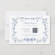 Ces élégantes cartes de réponse rsvp de mariage bleu et blanc poussiéreux présentent un cadre floral d'aquarelle bleu vintage avec de jolis feuilles botaniques, et une calligraphie élégante avec du texte classique. Le design en toile bleu à l'air français apportera une touche romantique et chic à votre papeterie mariage. La carte comporte un code QR scannable ainsi que votre site mariage, afin que vos invités puissent rsvp en ligne.