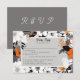 Complétez vos plans de célébration mariages avec cette carte rsvp moderne qui propose des floraux d'art en blanc classique, noir et subtil éclats d'orange vif, cette carte permet à vos invités de choisir leur option de repas préférée dans le style.