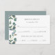 Cette carte de réponse rsvp de mariage simple et tendance propose des feuilles d'eucalyptus vert à l'aquarelle sur un arrière - plan blanc propre, avec de la place pour vos invités à choisir leur entrée.