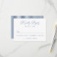 Complete your wedding stationery with this classic navy blue calligraphy wedding RSVP card, designed for formal and traditional celebrations. This refined wedding response card features elegant calligraphy-style lettering paired with structured serif typography, creating a timeless layout that feels polished and intentional. The deep navy blue color adds a tailored, old-money aesthetic, while the coordinating navy and white stripe detail brings a subtle menswear-inspired finish. Ideal for formal weddings, estate venues, and fall or winter celebrations, this RSVP card offers a sophisticated way for guests to respond. Personalize the wording to create a cohesive reply card that complements a classic wedding invitation suite.
