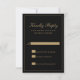 Carte de mariage RSVP de style traditionnel noir et faux or avec un design simple avec "Kindly Reply" dans une calligraphie élégante à l'intérieur d'une mince bordure. Le modèle permet à vos invités d'indiquer le numéro de présence. Ce design classique est parfait pour un mariage formel.