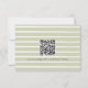 This whimsical coastal wedding response card with a QR code features a lace border and stylish sage green stripe background. Perfect for a beach or California destination wedding. Created by Simply Farmhouse Press.