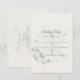 The front features a gently faded sand dollar watermark, graceful script for “Kindly Reply,” and refined form lines for guest responses. Subtle watercolor eucalyptus adds a fresh botanical touch that complements beach, shoreline, and destination weddings beautifully.