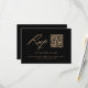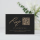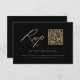 Parfaites pour un mariage moderne, ces cartes RSVP de code QR de calligraphie sont dotées d'un script élégant et d'un design minimaliste noir et or.