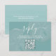 Cette conception présente une carte de détails de mariage simple et minimaliste avec code QR, un modèle d'insertion de monogramme à l'aquarelle, des détails de réponse en ligne avec une calligraphie minimale, une carte d'enveloppe avec une typographie de script élégante, avec un dollar de sable de plage turquoise et l'océan, parfait pour un mariage de destination de plage dans un resort insulaire, une carte de réponse de invitation de mariage en ligne, avec un thème océanique, maritime, côtier, une réponse de calligraphie stylée, un design moderne et classe.