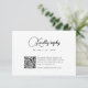 Créez une impression durable avec cette carte de boîtier RSVP simple et élégante pour votre site mariage. Conçu dans un style moderne et minimaliste, il présente une typographie classique et une atmosphère chic et sophistiquée sur un arrière - plan blanc. Personnalisez le texte avec vos noms, le site Web mariage, le code QR scannable et un message unique pour le rendre vraiment unique. Cette carte d'enceinte ajoute une touche d'élégance à votre suite de faire-part de mariage, permettant à vos invités de facilement RSVP et d'accéder à plus d'informations sur votre journée spéciale. Si vous avez besoin d'aide pour customiser ce produit, n'hésitez pas à me contacter en utilisant le bouton de message. Je me ferai un plaisir de vous aider et de vous assurer que vos besoins de personnalisation sont satisfaits à votre satisfaction.