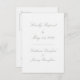 Une carte de réponse RSVP pour boîtier de courrier RSVP classique, élégante et en écriture, avec un stock de carte de lin blanc avec un script mariage gris moyen.