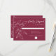 Cranberry Hand Drawn Foliage Wedding Response Card. This elegant response card features a delicate, hand-drawn botanical illustration in crisp white against a rich cranberry background. The minimalist design adds a touch of sophistication, making it perfect for matching your burgundy or cranberry wedding aesthetic. The elegant script typography mixed with a serif font makes it perfect for a formal wedding event. The clear options for guests to indicate their attendance ensure you receive timely RSVPs for your special occasion with this charming and practical card.
