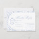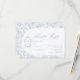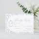 Light delft blue floral RSVP response card, designed in a refined blend of chinoiserie and French toile de Jouy style. The soft botanical illustrations frame an arched layout featuring an elegant wedding crest monogram, perfect for couples who love vintage, historic, and European-inspired aesthetics. Classic script typography pairs beautifully with the ceramic-blue palette, making this design an effortless nod to the tradition of “something blue.” Fully customizable with your RSVP date, guest name and menu choice, it’s an exquisite choice for any romantic or sophisticated wedding theme.