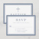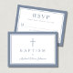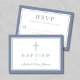 Dusty Blue Religious Cross Boy Baptism RSVP Card.
