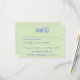 Une simple et élégante calligraphie vert et bleu rétro mariage carte rsvp. Il a un arrière - plan vert moderne vintage avec écriture bleue manuscrite et lunettes de champagne dessinées à la main. Minimaliste et chic avec des lettres audacieuses et rétro. Il est entièrement modifiable en cliquant sur le bouton Personnaliser.