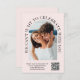 Carte d'enceinte RSVP de mariage rose clair moderne qui présente votre photo dans une arche et "We Can't Wait To Celebrate With You" dans une élégante typographie. Entrez l'adresse URL de votre site Web mariage pour créer un code QR que vos invités peuvent scanner en ligne vers RSVP et obtenir des détails supplémentaires tels que les logements et les itinéraires.