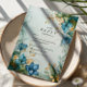 A refined botanical design featuring hand-painted blue lilies, soft sage textures, and shimmering gold accents. Vintage florals blend with a modern romantic palette, creating an elevated look perfect for an elegant garden or outdoor celebration. Subtle marble undertones and intricate detailing frame your event text beautifully, offering a timeless, graceful, and sophisticated aesthetic. Ideal for couples who love artistic, nature-inspired styling with a luxurious touch.