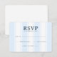 This wedding RSVP card features a minimalist and elegant design with vertical light blue stripes on a white background, creating a subtle yet sophisticated pattern. The soft sky blue color palette contrasts gently against the clean backdrop, enhancing its formal yet approachable aesthetic. Bold serif typography highlights the "RSVP" text, while customizable fields allow for personal input, ensuring adaptability without compromising visual coherence. The ample spacing and structured layout convey clarity and sophistication, making it perfect for formal occasions like weddings.