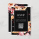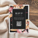 Cartes mariages de automne modernes rsvp avec élégantes touches florales boho automne de fleurs dahlia et feuilles botaniques automne, design typographique minimaliste sur arrière - plan noir. Ajoutez votre propre code QR personnalisé avec l'URL personnalisée du site de mariage.