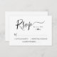 Élégantes cartes de réponse de mariage minimalistes modernes en noir et blanc avec calligraphie présentent un design typographique chic et élégant avec un script calligraphié. Avec le monogramme du couple avec un petit motif de cœur. Texte personnalisé minimaliste qui peut être personnalisé avec la date limite de réponse. La conception comprend une ligne pour le(s) nom(s) de l'invité, la participation à l'événement et le nombre total d'invités présents.