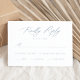 Carte RSVP de mariage simple avec un script de calligraphie bleu poussiéreux moderne avec un arrière - plan blanc (ou couleur de votre choix). Personnalisez la carte RSVP bleu poussiéreux avec la date de réponse désirée, acceptez/refusez le libellé et les options de repas. La carte RSVP de choix de repas de calligraphie a été conçue pour coordonner avec notre collection Elegant Calligraphy mariage.