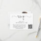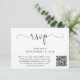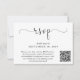 Elégante carte RSVP mariage qui présente "rsvp" dans un script élégant avec des swashes. Entrez l'adresse de votre site Web mariage pour créer un code QR que vos invités peuvent analyser en ligne vers RSVP. L'arrière présente votre photo superposée avec vos prénoms et date mariage réunis par un coeur.