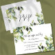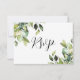 Cette carte de réponse mariage simple, élégante et minimaliste présente de magnifiques eucalyptus à l'aquarelle, de la verdure, des plantes et du feuillage dans des tons et des tons de vert variés. Calligraphie de script élégante pour rsvp et répondez par zones de texte et par police serif simple et facile à lire pour plus de détails sur la carte de réponse.